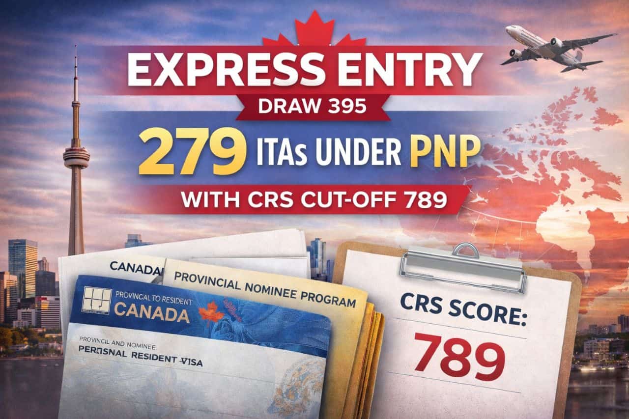 Canada held Express Entry Draw 395 on February 16, 2026, issuing 279 Invitations to Apply (ITAs) to candidates under the Provincial Nominee Program (PNP). The CRS cut-off reached 789, reflecting the high scores typical of PNP-specific draws, where candidates receive an additional 600 CRS points for securing a provincial nomination. This latest round reinforces the growing importance of provincial immigration pathways for candidates seeking Canadian permanent residence in 2026.